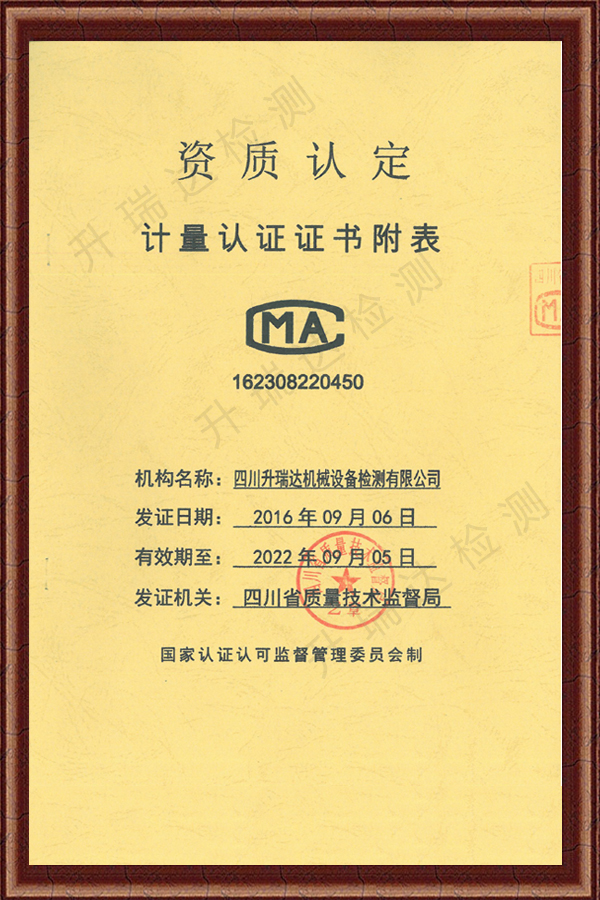 4月22日,經四川省市場監(jiān)督管理局核準,取得房屋建筑及市政工程工地的橋(門)式起重機、塔式起重機、施工升降機等特種設備監(jiān)督檢驗和定期檢驗的綜合類甲級檢驗檢測資質(核準證號:TS7151505-2024)。