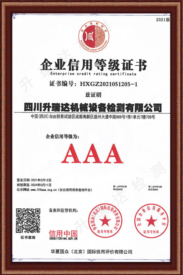 四川升瑞達機械設備檢測有限公司成立于2015年12月7日,迄今已經走過6年的歷程,在這6年的前進中公司一直以誠信、專業(yè)、高效為準則,致力于特種設備的檢測業(yè)務,公司擁有龐大的專家?guī)熨Y源,擁有嚴謹的管理體系,為客戶提供專業(yè)的技術咨詢、出具調查報告及相關客戶安全培訓。